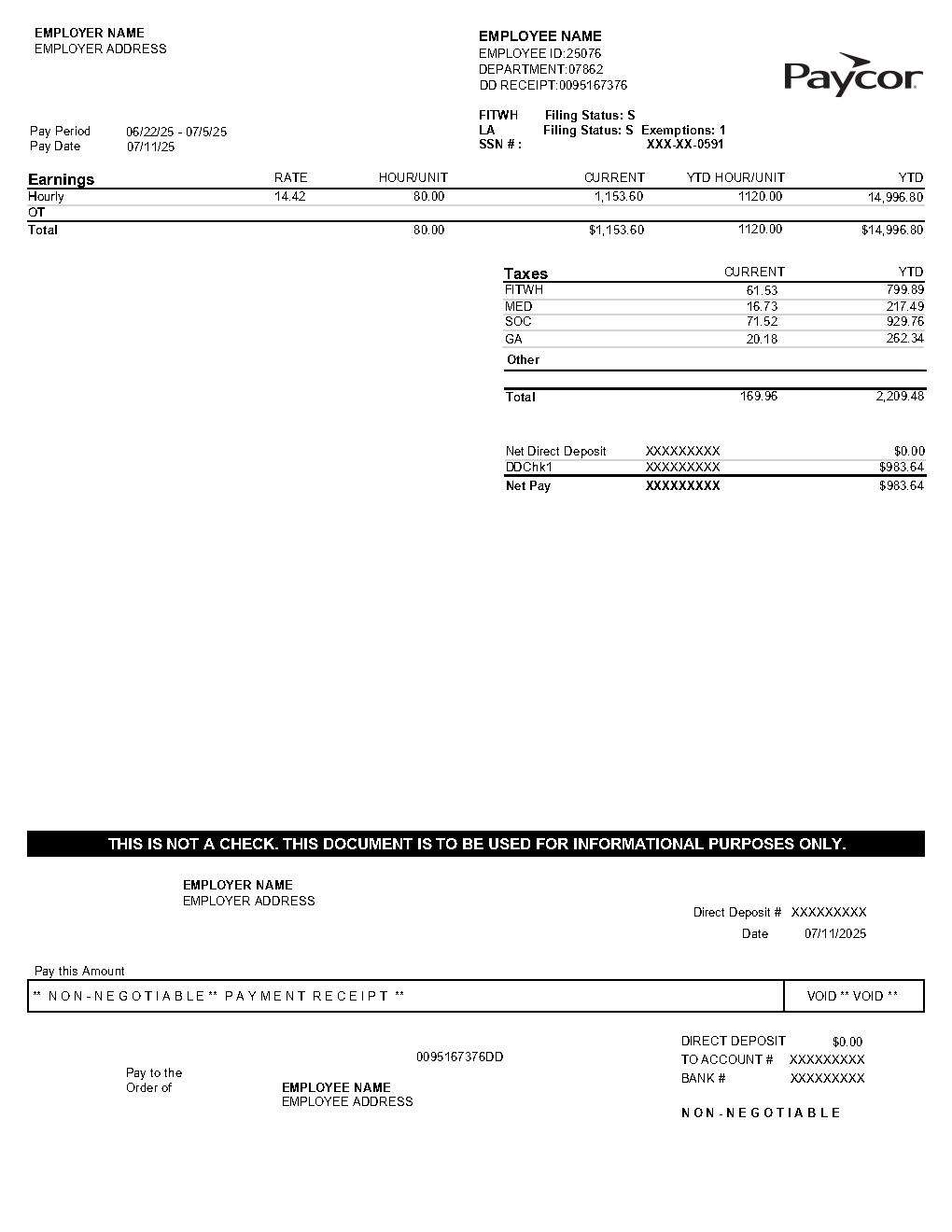The Paycor Pay Stub Template provides a structured and professional payroll layout that highlights earnings, taxes, and deductions clearly. The template is designed to display employee payroll information in a clean and easy-to-read format.